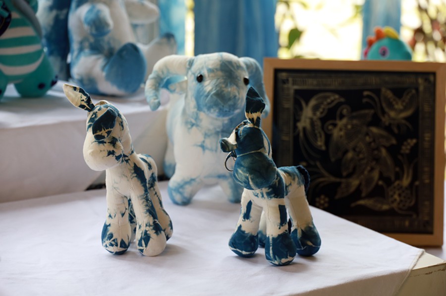 用蓝靛染布料制作的手工艺品